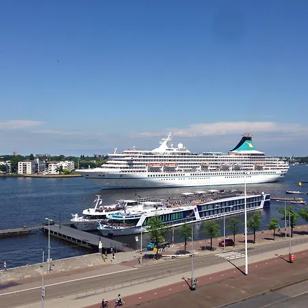 Die eleganten und modernen Zimmer sind mit einem Hauch von Komfort ausgestattet und verfügen über großzügige Wohnbereiche sowie Küchen mit Kühlschränken und Öfen. Jedes Zimmer ist in sanften Farbtönen gehalten, die zur entspannten Atmosphäre beitragen. Die großen Fenster bieten teilweise einen atemberaubenden Blick auf den belebten IJ-Wasserweg oder die malerischen Teile der Stadt.